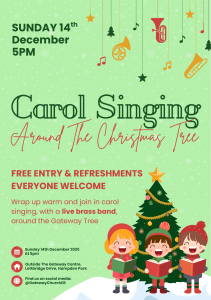 Wrap up warm, grab a mince pie and a hot drink, and join us for some carols, old and new around our huge community Christmas tree.